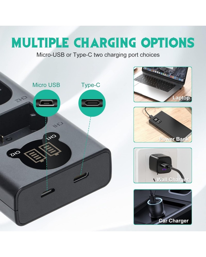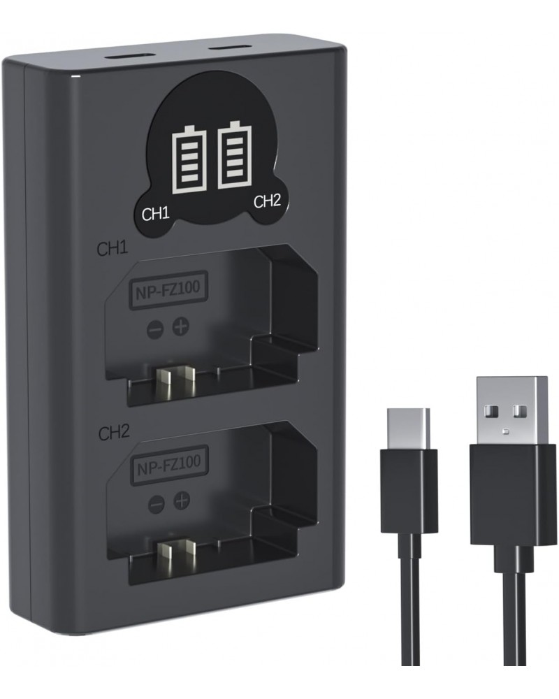 NP-FZ100 Camera Charger Dual Slot Digital Display with SD Card Storage Function