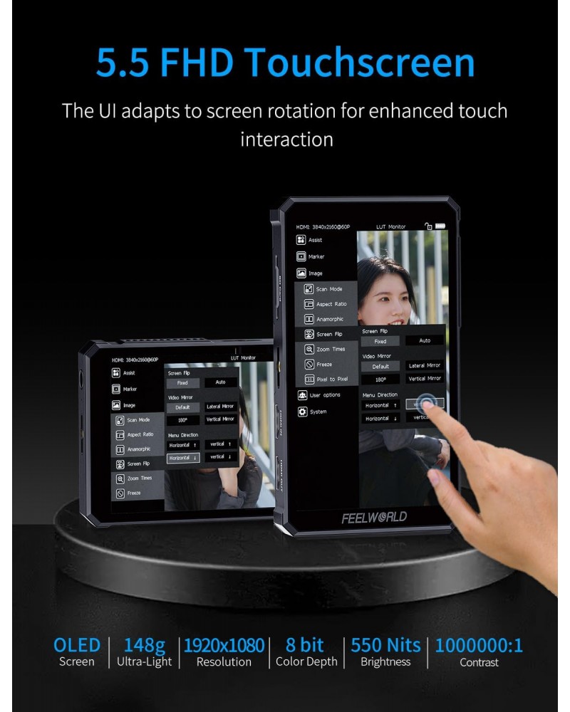 الكلمات الدليليلة : شاشة, كاميرا, عمودية, أفقية, FeelWorld PS6 5.5" OLED Vertical Horizontal On-Camera Monitor