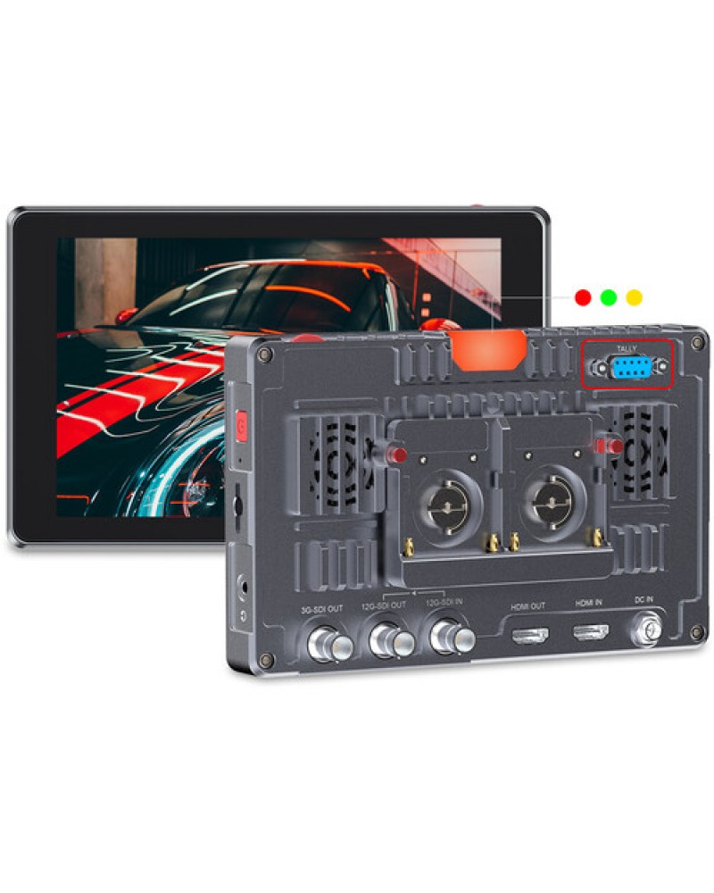 Other features include HDMI/SDI cross conversion to eliminate the need for external converters, a 16-channel audio meter, 10-bit color depth, HDR HLG support, applying 3D LUTs on loop output, a 3-color tally light, cooling fans, and support for 11 languages. Numerous professional imaging tools are built-in for accurate monitoring, including waveform, vectorscope, histogram, and more. It is powered using a power adapter or the rear dual L-series battery mount.