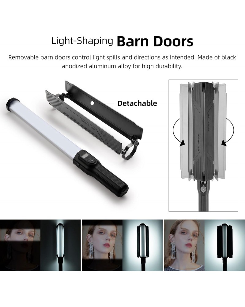 NiceFoto TC-C2 Bi-Color RGB 24W Handheld LED Light Wand with Barndoor