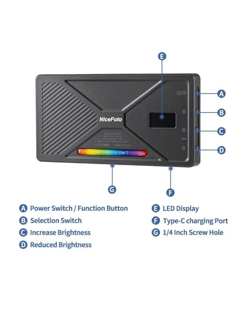The NiceFoto TC-225 Pro is a Compact, High-Performance RGB LED light designed for Photographers, Videographers, and Content Creators Who Need Portable and Versatile Lighting.