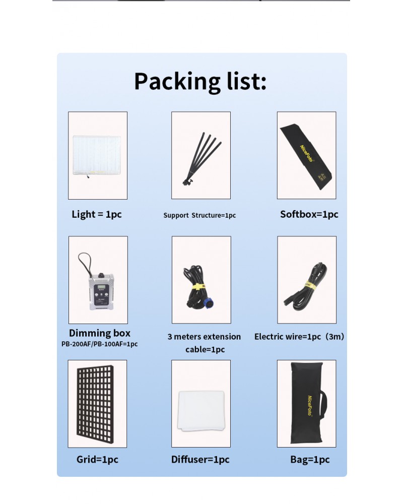 الكلمات الدليليلة : ضوء, النسيج, القابل, للطي, NiceFoto FB-1000A 100W Bi-Color Folding Fabric LED Light