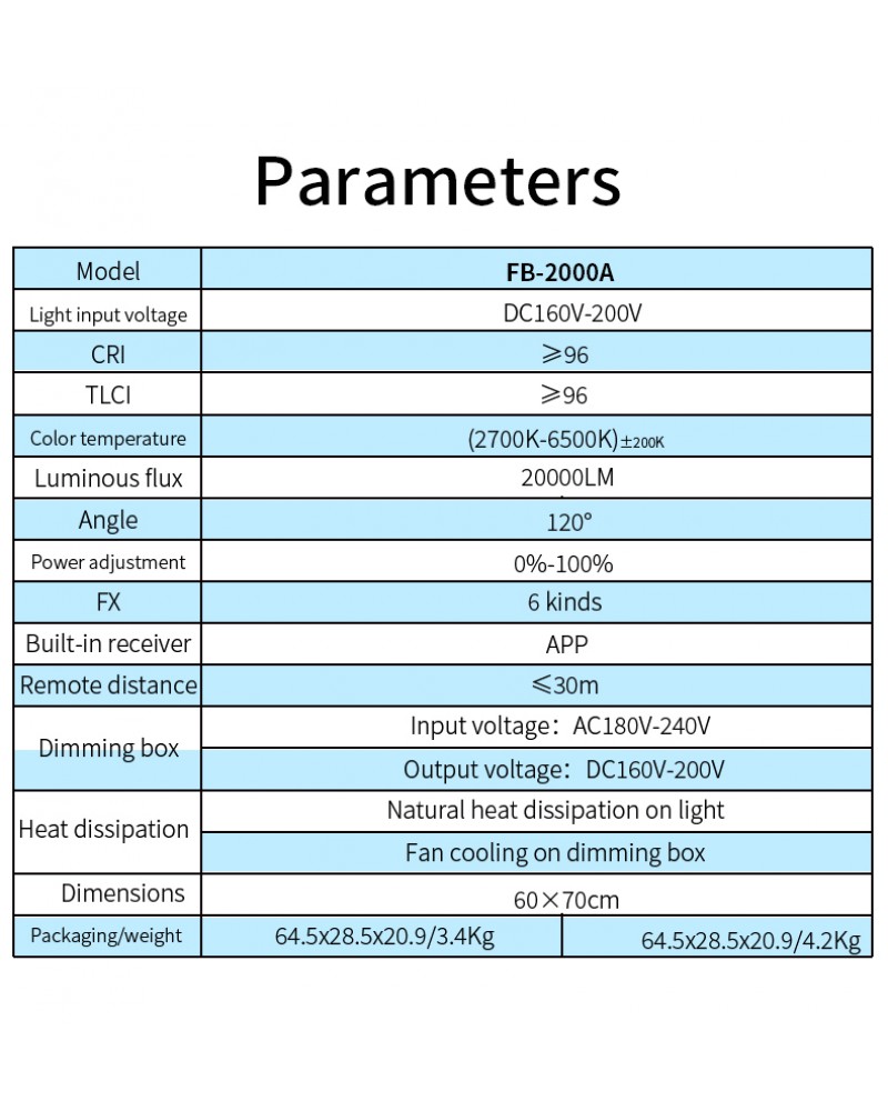 High Output: 200W power rating provides strong illumination suitable for professional use.