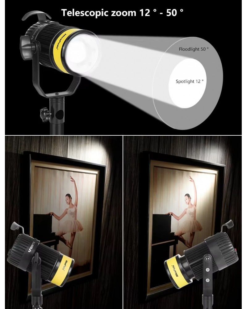 The NiceFoto BJ-600A is a versatile 35W Bi-Color Zoom LED video light designed for studio photography and videography. Here's a detailed overview of its