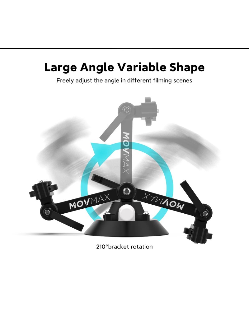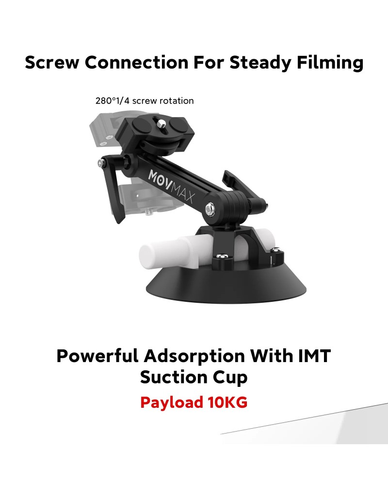 The Suction Cup with 5" Bracket from MOVMAX features a locking suction cup with an adjustable 5" mounting arm for mounting a small camera or accessory onto a window, windshield, or other flat, smooth surface. The 4.5" suction cup mounts onto a flat surface and locks with a strong suction and it supports a camera or accessory up to 22 lb.