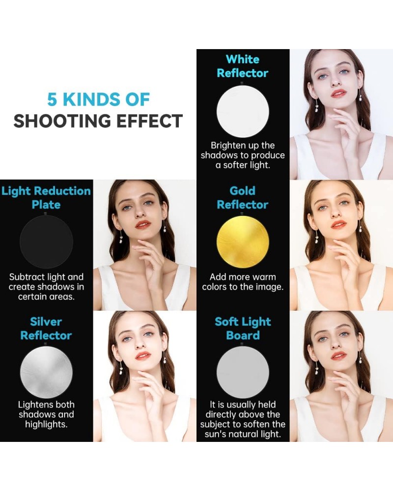 الكلمات الدليليلة : عاكس, اضاءة, عاكس, اضاءه, عواكس, منعم, NiceFoto SR-5-Ø22" 5in1 Round Reflector Discs (56cm)