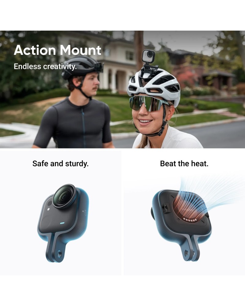 Unlike the Standard version, the Premium Cycling Bundle comes with a full set of dedicated accessories: Handlebar Mount, Pivot Stand, Quick Release Mount 2.0, safety strap, Lens Guard, carrying bag and 128GB microSD card in the box - ideal for vloggers, long-distance cyclists or outdoor content creators.