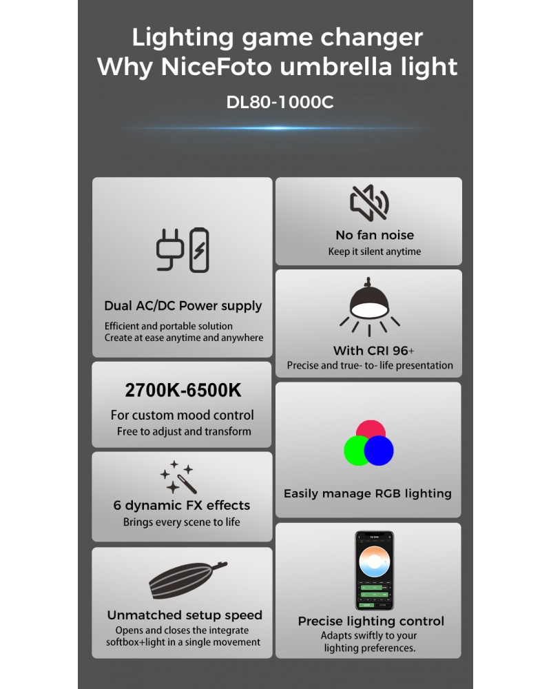 NiceFoto DL80-1000C 100W RGBWW Umbrella Light