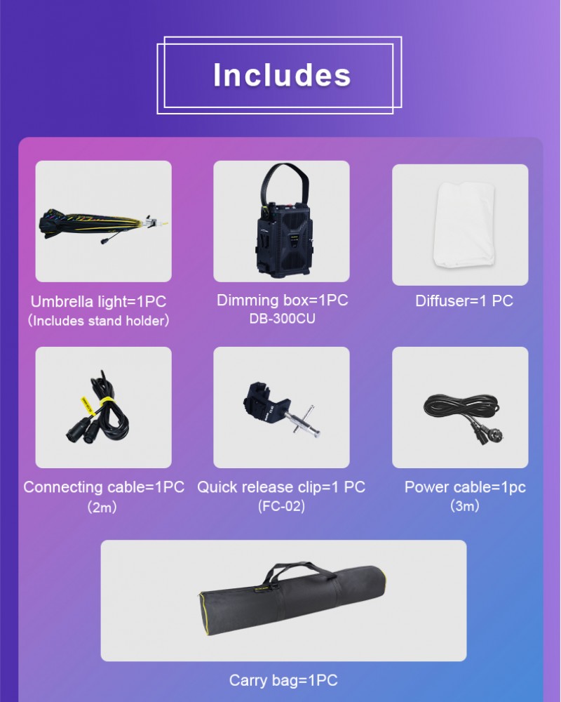 NiceFoto DL120-3000C 300W RGB Umbrella Light(With Grid)