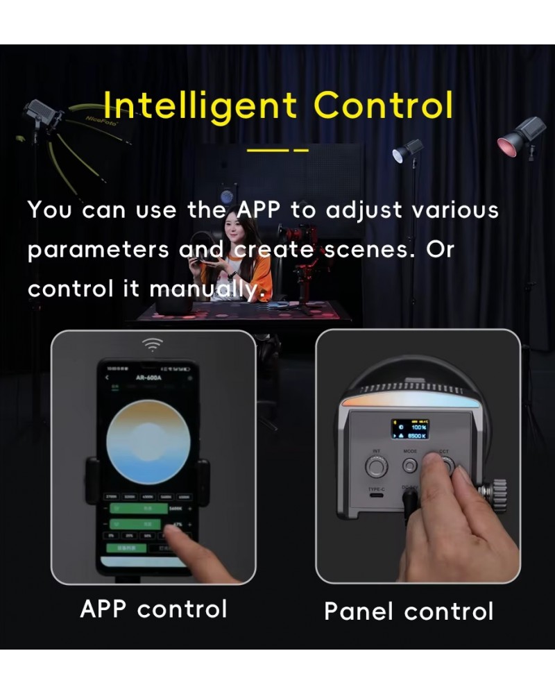 High Power and High Brightness: The studio LED video light is capable of supporting a high-power output of 50W. When equipped with a standard reflector, it can achieve an impressive maximum brightness of 5200 lux at a distance of 1 meter.
